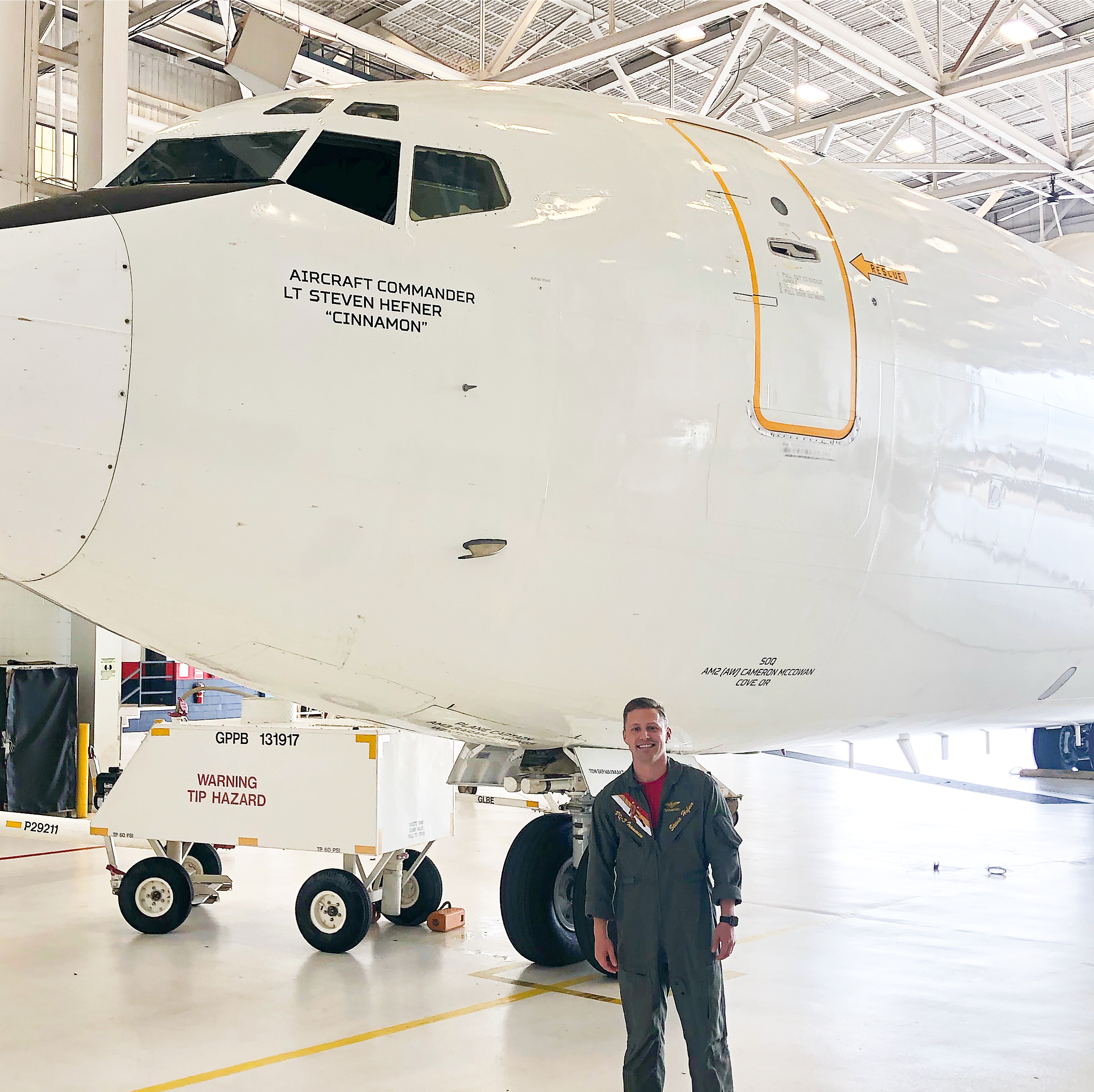 While in the Navy, Hefner has served as part of the nation’s nuclear deterrence mission at Strategic Communications Wing One. The Navy command consists of a wing staff, the Center for Naval Aviation Technical Training and three Fleet Air Reconnaissance Squadrons: The “Ironmen” of VQ 3, the “Shadows” of VQ 4 and the “Roughnecks” of VQ 7. Hefner served with VQ-3 and VQ-7 and flew a Boeing E-6B Mercury, which is similar to a Boeing 707. In 2020, he was named the STRATCOMMWING One Pilot of the Year and the VQ 3 Pilot of the Year.